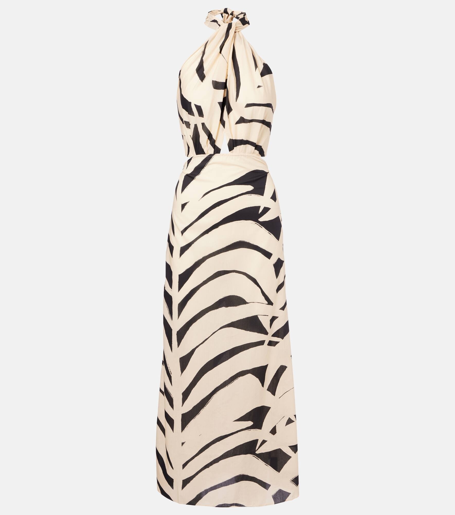 Printed cutout halterneck cotton maxi dress