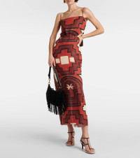 Printed cutout linen midi dress