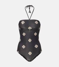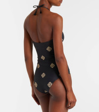 Johanna Ortiz based her eponymous brand in her hometown of Cali, Colombia, to celebrate its unique, colorful soul. This swimsuit perfectly embodies this aesthetic with its tropical-inspired print. Product Details - Material: 75% polyester, 16% polyamide, 9% elastane - Care instructions: hand wash - Made in Colombia - Designer color name: Black/Ecru - Item color: black, beige - Lining: 80% polyester, 20% elastane - Self-tie neck - Item number: P01039833 Size & Fit - True to size - Unpadded Top - Medium-cut leg - The model seen in the picture is 178cm-5'10", cup size B, and wearing a size XS
