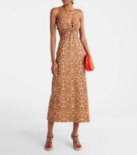 Ring-detail cutout printed maxi dress