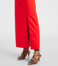 Product Details - Material: 97% cotton, 3% elastane - Care instructions: dry clean - Made in Colombia - Designer color name: Fire Red - Lining: 100% cotton - Fully lined - Closure: zipped back - Item number: P00950203 Size & Fit - True to size - Cinched waist - Non-stretchy fabric - slit length 47,0cm-18.5" - The model seen in the picture is 178cm-5'10" and wearing a size US 4
