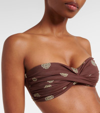 The Sea Sprite bikini top from Johanna Ortiz is designed with a charming ruched detail at the front and showcases a geometric print. This piece is finished with a practical toggle fastening at the back. Product Details - Material: 78% polyamide (recycled), 22% elastane - Care instructions: hand wash - Made in Colombia - Designer color name: Dark Chocolate/Light Green - Item color: brown - Lining: 80% polyester, 20% elastane - Boning - Closure: toggle fastening - Includes: dust bag - Item number: P01039707 Size & Fit - True to size - Strapless - Unpadded Top - The model seen in the picture is 178cm-5'10", cup size B, and wearing a size XS