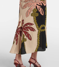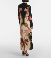 Queen Palm belted printed silk crepe de chine midi dress Black