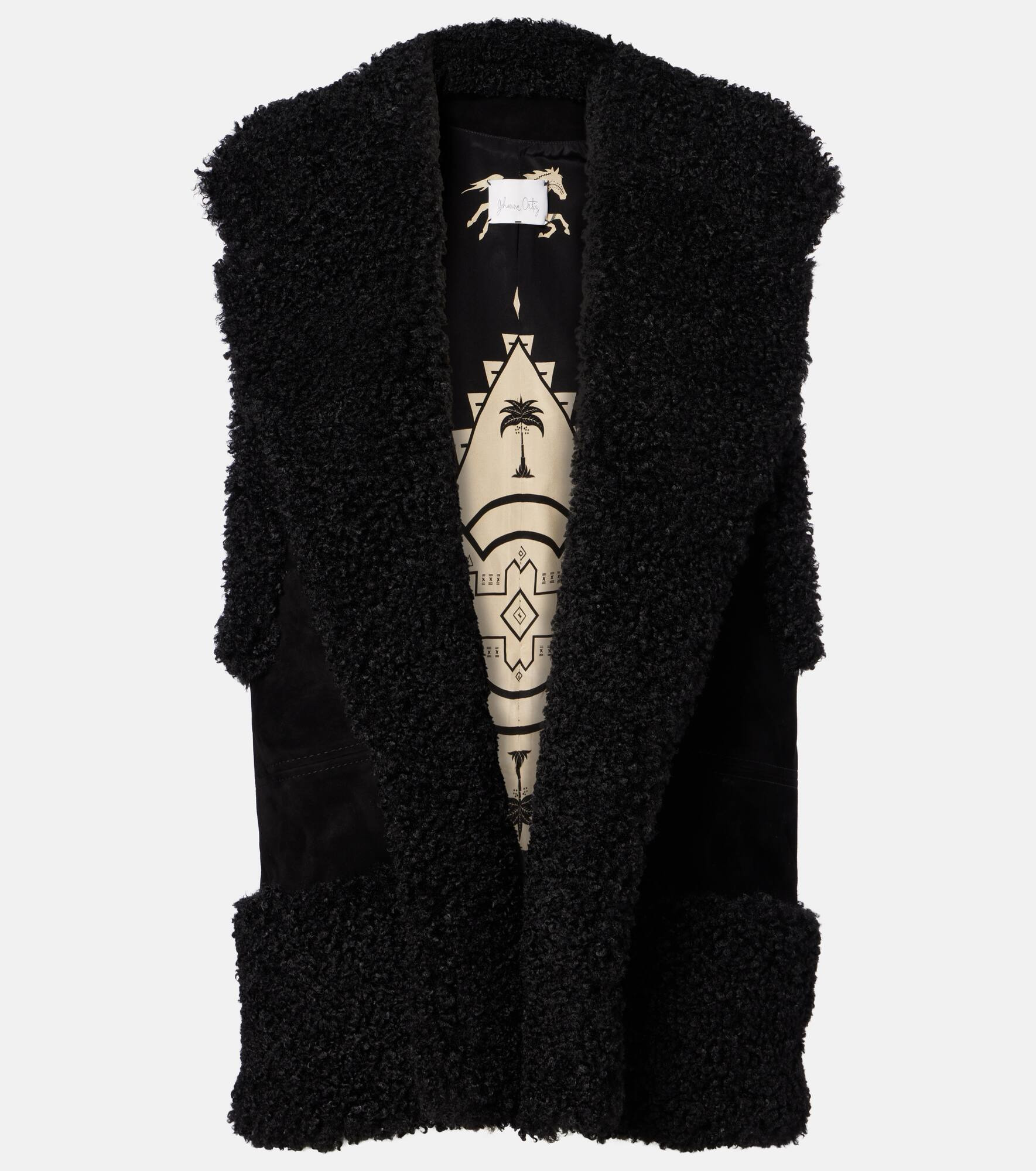 Primed for effortless layering, this vest from Johanna Ortiz is a piece you'll love season after season. The style is meticulously crafted from suede and is complete with plush shearling trims and side pockets. Product Details - Material: 70% goat leather, 30% polyester (recycled) - Care instructions: specialist clean - Made in Colombia - Designer color name: Black - Item color: black - Pockets: side slit pockets - Closure: open front - Item number: P01052003 Size & Fit - True to size - Designed for a loose fit - Non-stretchy fabric - Falls below the hip - The model seen in the picture is 178cm-5'10" and wearing a size XS