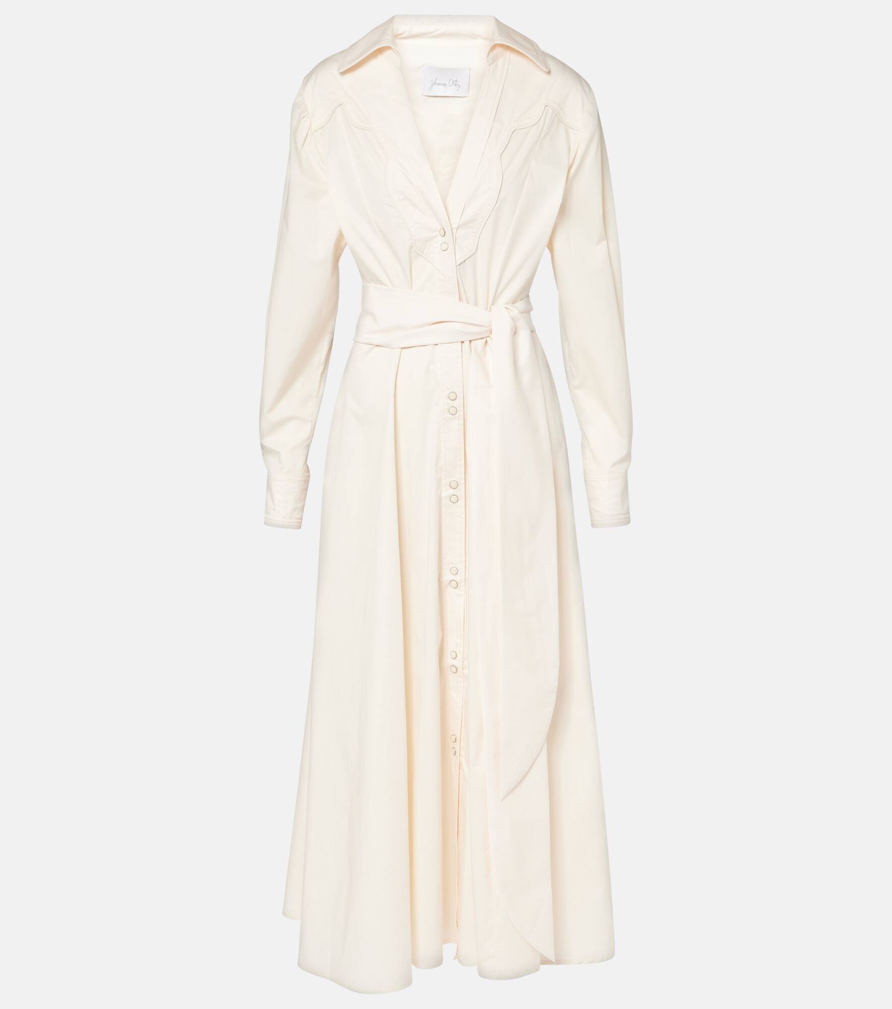 Vela De Cruz Belted Cotton-blend Poplin Midi Shirt Dress