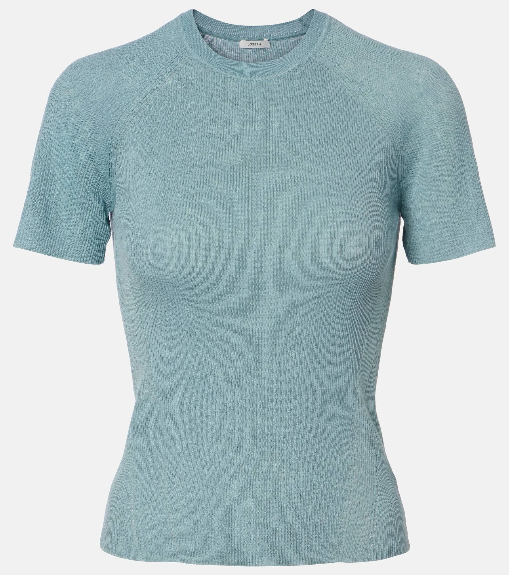 Notable for its understated yet sophisticated approach to design, Joseph delivers the building blocks for your forever wardrobe. The Belarb T-shirt is cut from a fine knit with a ribbed finish. Product Details - Material: 59% lyocell, 25% linen, 14% polyester, 2% polyamide - Care instructions: dry clean - Made in China - Color: blue - Designer color name: Chambray - Item number: P01119643 Size & Fit - True to size - Fitted - Stretchy fabric - Slightly cropped - The model seen in the picture is 178cm-5'10" and wearing a size XS