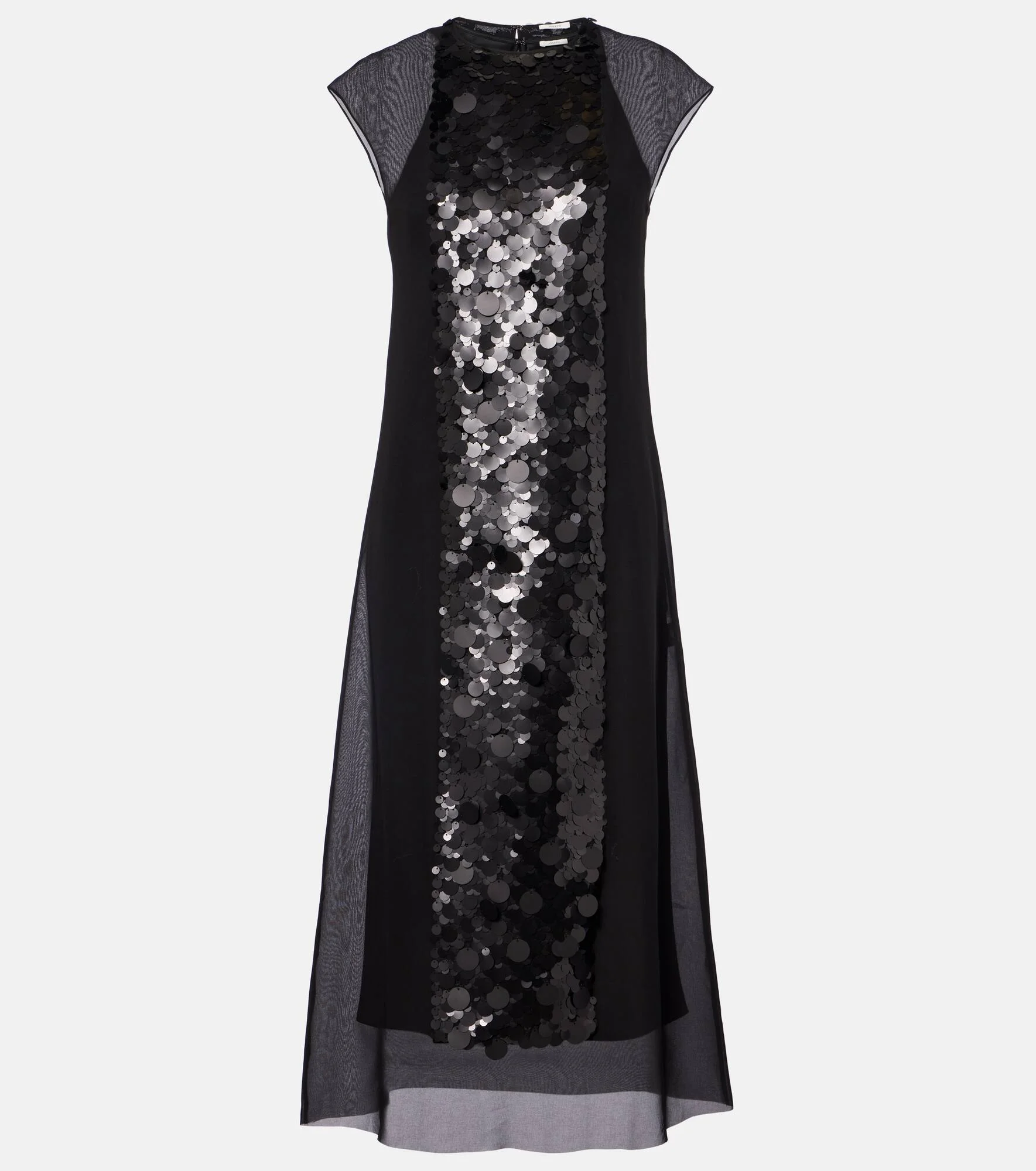 Notable for its understated yet sophisticated approach to design, Joseph delivers the building blocks for your forever wardrobe. The Boulle midi dress is crafted with a two-piece construction, showcasing a sheer chiffon overlay embellished with glimmering sequins. Product Details - Material: 100% polyester - Care instructions: dry clean - Made in China - Designer color name: Black - Item color: black - Lining: 81% acetate, 19% polyester - Two-piece set - Detachable lining - Closure: hook-fastening back - Hem: straight - Item number: P01115044 Size & Fit - True to size - Cinched waist - Non-stretchy fabric - The model seen in the picture is 178cm-5'10" and wearing a size FR 36