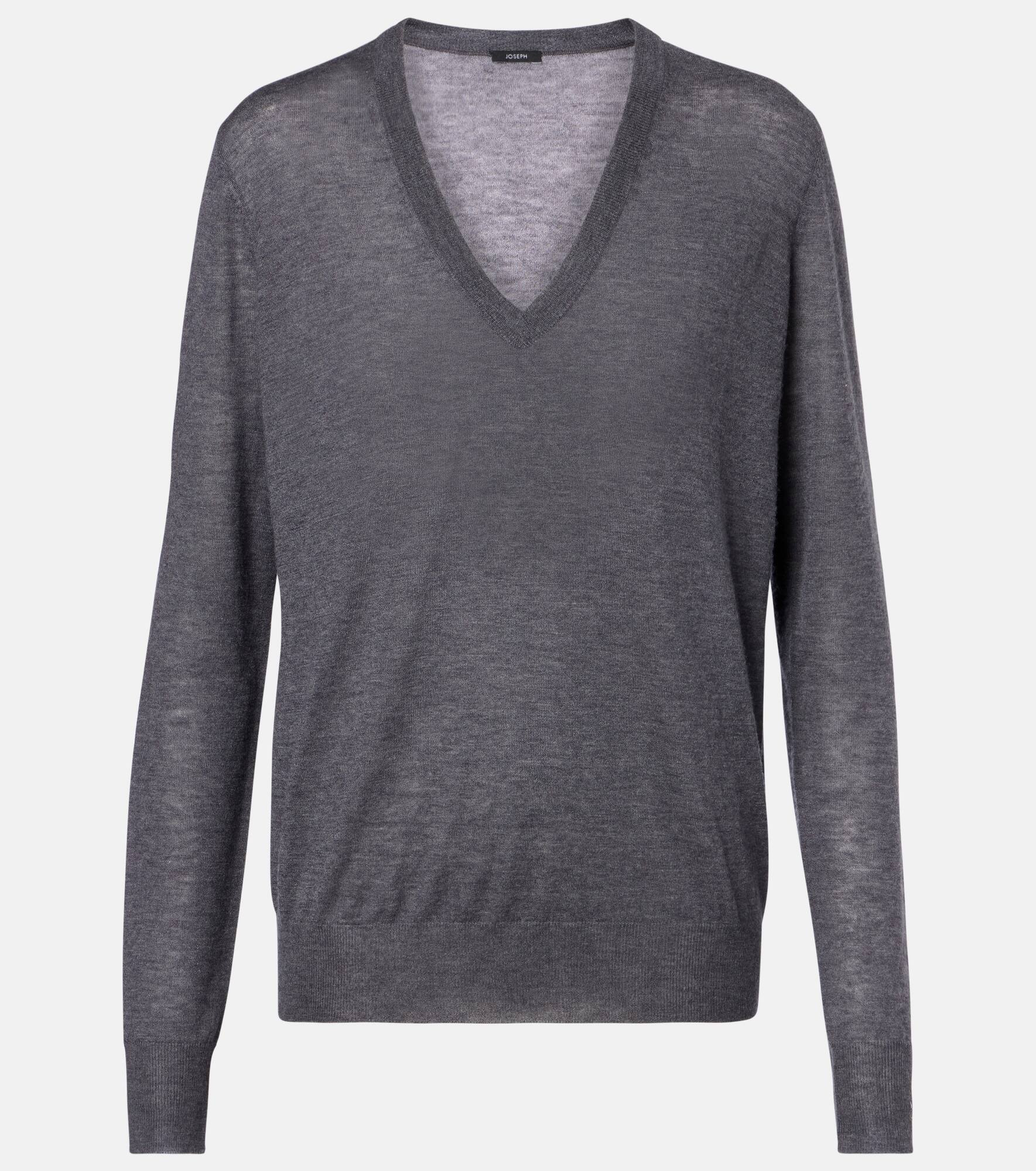 Notable for its understated yet sophisticated approach to design, Joseph delivers the building blocks for your forever wardrobe. Made from pure cashmere, this sweater has a V-neck and ribbed cuffs and hem. Product Details - Material: 100% cashmere - Care instructions: dry clean - Made in China - Designer color name: Smoke - Item color: gray - Collar: V-neck - Cuff: ribbed - Hem: ribbed - Item number: P01045333 Size & Fit - True to size - Designed for a loose fit - Stretchy fabric - Falls to the hip - The model seen in the picture is 178cm-5'10" and wearing a size XS