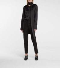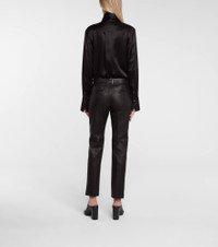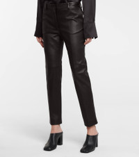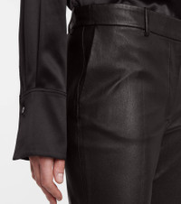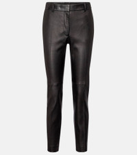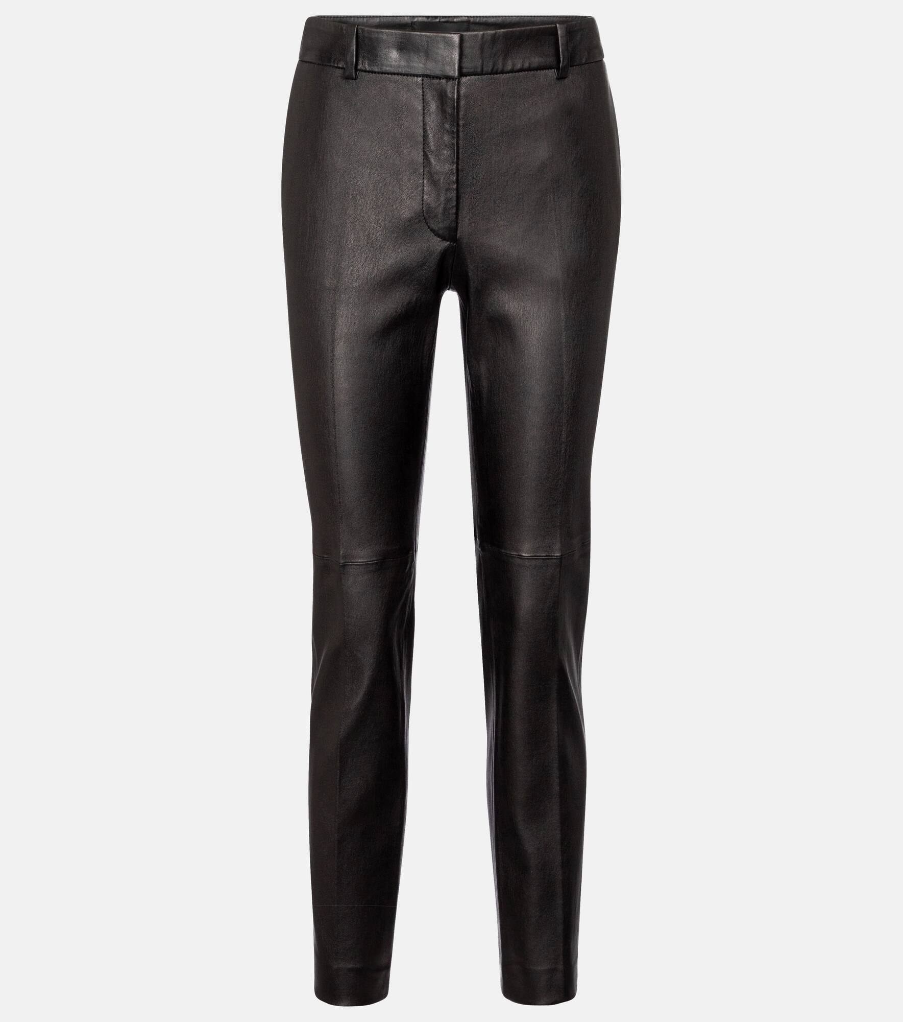 Classic cigarette pants are elevated with luxe leather, courtesy of this Coleman design from Joseph. Arriving in black, they feature a mid-rise waist, slim-legs and a stretch-jersey lining for assured comfort. Let yours add high-fashion appeal to workwear ensembles. Product Details - Care instructions: specialist clean - Closure: zipper fly, button and hook fastenings - Belt loops - Designer color name: Black - Made in France - Pockets: side slit pockets, back pockets - Lining: partially lined, 3% elastane, 97% cotton - Material: lamb leather - Item number: P00530326 Size & Fit - True to size - Mid-weight material - Stretchy fabric - Leather relaxes over time - Slim-leg - Inseam length approx: 71cm-28" - The model seen in the picture is 178cm-5'10" and wearing a size FR 36