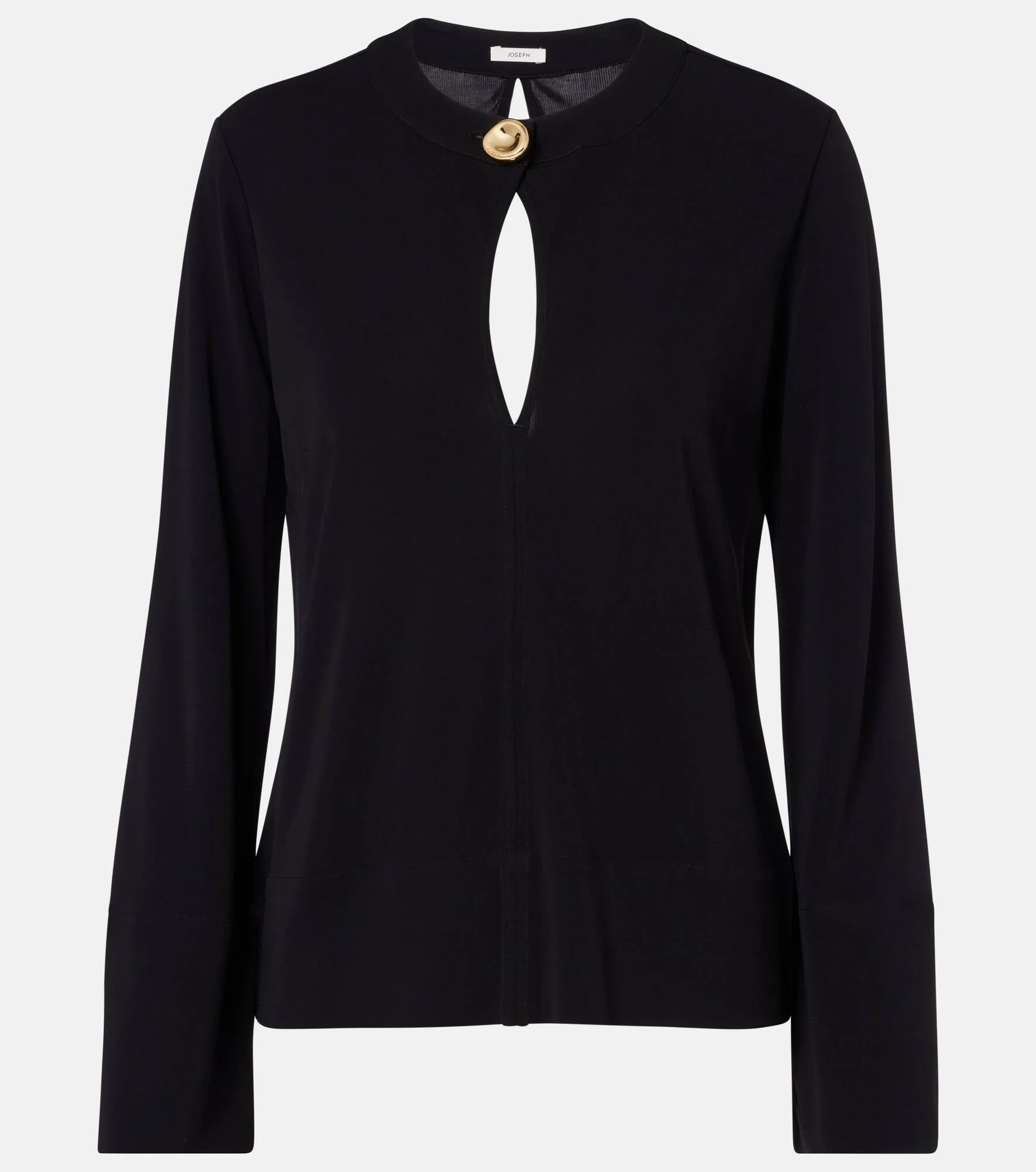 Notable for its understated yet sophisticated approach to design, Joseph delivers the building blocks for your forever wardrobe. Crafted from a fluid jersey, this Fabiola blouse is detailed with a keyhole opening and a gold-toned button at the neck. Product Details - Material: 100% viscose - Care instructions: hand wash - Made in China - Color: black - Designer color name: Black - Closure: buttoned front - Hardware color: gold - Item number: P01119641 Size & Fit - True to size - Cinched waist - Stretchy fabric - Falls to the hip - The model seen in the picture is 178cm-5'10" and wearing a size XS