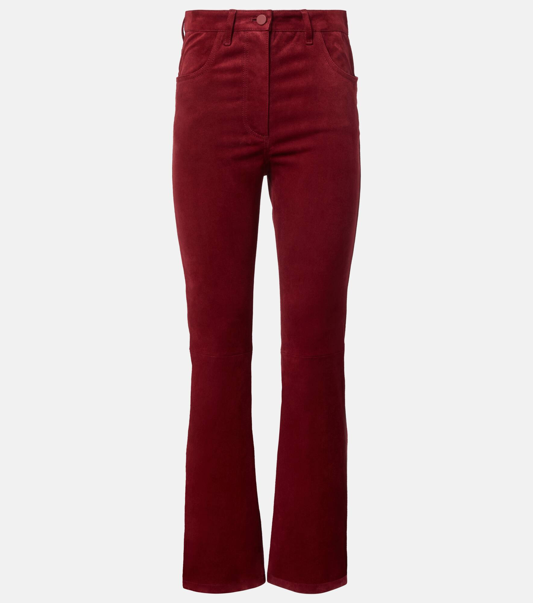 Product Details - Material: 100% lamb leather (suede) - Care instructions: do not wash - Made in France - Designer color name: Ruby - Item color: red - Item number: P01045329 Size & Fit - True to size - Stretchy fabric - Bootcut - The model seen in the picture is 178cm-5'10" and wearing a size FR 36