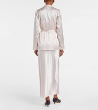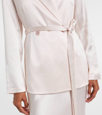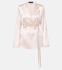 Crafted in Italy from silk satin, the Joubert blazer from Joseph features a double-breasted style with self-ties for closure. This design is finished with notched lapels. Product Details - Material: 100% silk - Care instructions: dry clean - Made in China - Designer color name: Rose - Item color: pink - Closure: double-breasted, self-ties - Detachable belt - Belt loops - Notched lapel - Item number: P01045264 Size & Fit - True to size - Loose fit, comes with belt - Non-stretchy fabric - Falls below the hip - The model seen in the picture is 178cm-5'10" and wearing a size FR 36
