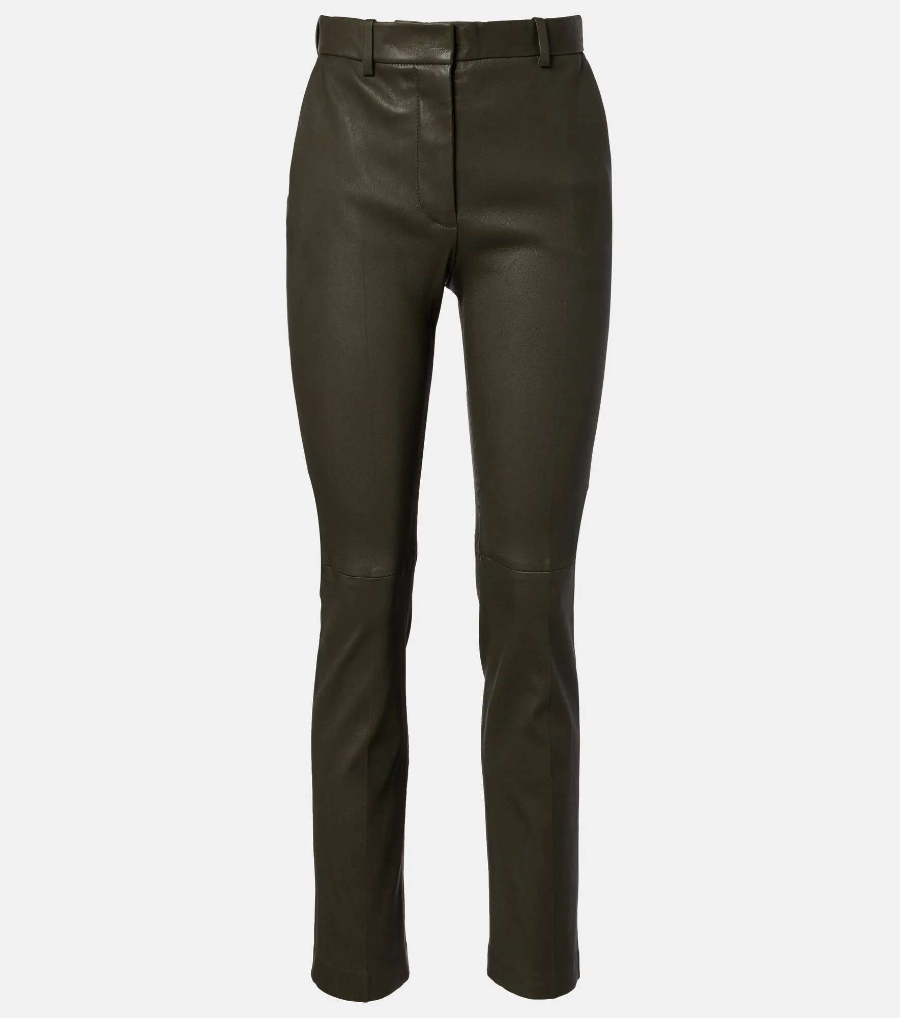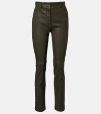 Notable for its understated yet sophisticated approach to design, Joseph delivers the building blocks for your forever wardrobe. These slim pants are made in France from leather and lined with cotton in a fitted design with side-slit pockets. Product Details - Material: 100% lamb leather - Care instructions: specialist clean - Made in France - Color: green - Designer color name: Palm Leaf - Material II: 98% cotton, 2% elastane - Lining: 100% cotton - Lining II: 68% acetate, 32% polyester - Belt loops - Closure: zipper fly, button and hook fastenings - Pockets: side slit pockets, back pockets - Item number: P01119614 Size & Fit - True to size - Stretchy fabric - Straight leg - The model seen in the picture is 178cm-5'10" and wearing a size FR 36