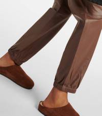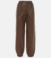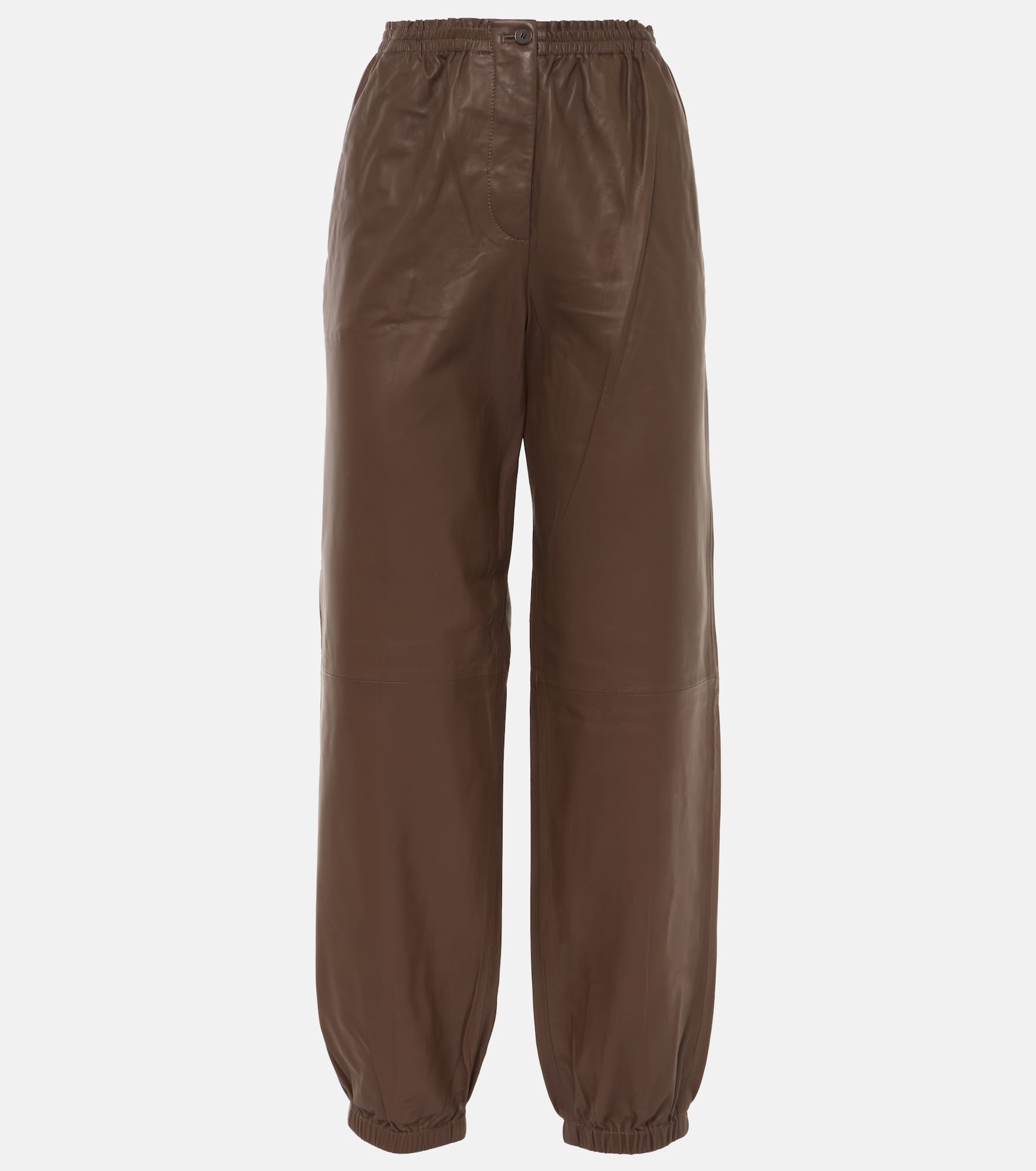 Product Details - Material: 100% lamb leather - Care instructions: specialist clean - Made in Turkey - Designer color name: Arabica - Closure: zipper fly, button fastening - Pockets: side slit pockets - Hem: elasticated - Item number: P00962131 Size & Fit - True to size - Elasticated waist - Non-stretchy fabric - Tapered leg - The model seen in the picture is 178cm-5'10" and wearing a size FR 36