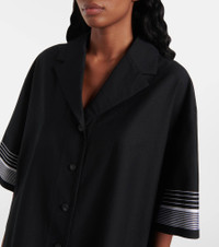 Notable for its understated yet sophisticated approach to design, Joseph delivers the building blocks for your forever wardrobe. Detailed with contrast stripes at the sleeves, the Leopold shirt is expertly crafted from cotton and silk into a relaxed silhouette. Product Details - Material: 87% cotton, 11% silk, 2% viscose - Care instructions: dry clean - Made in Bangladesh - Designer color name: Black - Item color: black - Closure: buttoned front - Item number: P01045222 Size & Fit - True to size - Dropped shoulders - Designed for a loose fit - Non-stretchy fabric - Falls to the hip - The model seen in the picture is 178cm-5'10" and wearing a size FR 36