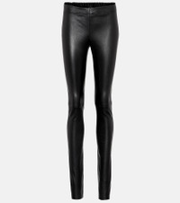 These black leather leggings from JOSEPH are a wardrobe essential. They're made in France from lambskin that's bonded to stretch-cotton for a figure-hugging fit. The mid-rise, elasticated waistband helps them stay in place. Product Details - Material: 100% lamb leather - Care instructions: specialist clean - Made in France - Designer color name: Black - Material II: 3% elastane, 97% cotton - Elasticated waistband - Item number: P00272006 Size & Fit - True to size - Elasticated waist - Mid-weight material - Stretchy fabric - Leather relaxes over time - The model seen in the picture is 178cm-5'10" and wearing a size FR 36