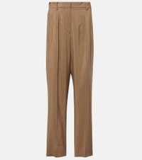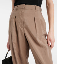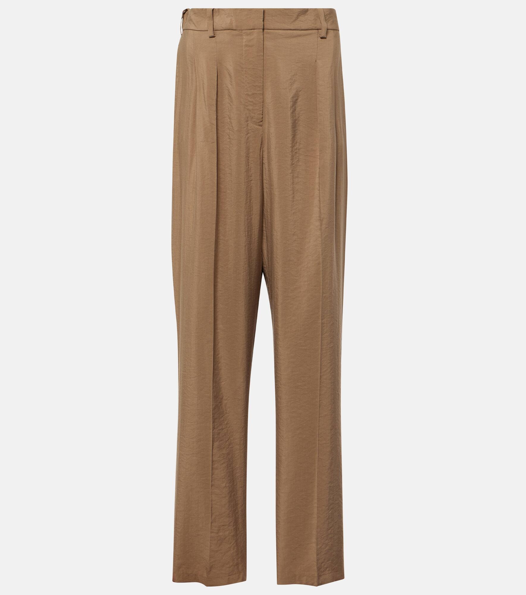 Product Details - Material: 82% silk, 18% polyamide - Care instructions: dry clean - Made in Bulgaria - Designer color name: Frozen Mocha - Lining: 73% acetate, 27% silk - Closure: zipper fly, button fastening - Pockets: side slit pockets, back pockets - Elasticated waistband - Item number: P00903417 Size & Fit - Fits large to size - we recommend trying one size smaller - Elasticated waist - Non-stretchy fabric - Wide-leg - High-waisted - The model seen in the picture is 178cm-5'10" and wearing a size FR 34