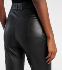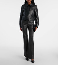 Product Details - Material: 100% leather - Care instructions: specialist clean - Made in France - Designer color name: Black - Closure: zip, hook, and button fastening - Belt loops - Pockets: side slit pockets, back pocket - Lining: 100% cotton - Item number: P01019793 Size & Fit - True to size - Slightly stretchy fabric - Leather relaxes over time - Slim-leg with a flared hem - The model seen in the picture is 178cm-5'10" and wearing a size FR 36