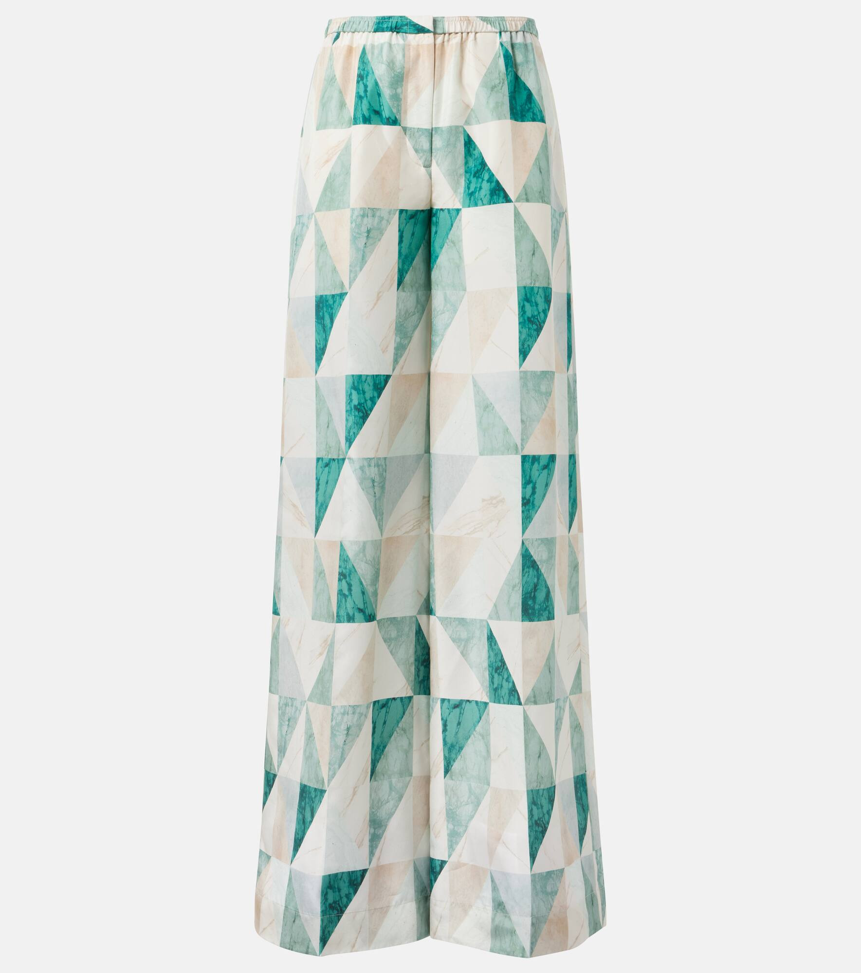 Notable for its understated yet sophisticated approach to design, Joseph delivers the building blocks for your forever wardrobe. Shaped into a fluid, wide-leg silhouette, the Thoresby pants feature a striking marble print and are crafted from habotai silk—renowned for its lightness, sheen, and silky hand feel. Product Details - Material: 100% silk - Care instructions: dry clean - Made in China - Designer color name: Lagoon Combo - Item color: green - Elasticated waistband - Item number: P01045239 Size & Fit - Fits large to size - we recommend trying one size smaller - Elasticated waist - Wide-leg - High-waisted - The model seen in the picture is 178cm-5'10" and wearing a size FR 34