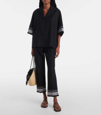 Product Details - Material: 87% cotton, 11% silk, 2% viscose - Care instructions: dry clean - Made in Bulgaria - Designer color name: Black - Item color: black - Item number: P01045223 Size & Fit - True to size - Elasticated waist - Non-stretchy fabric - Straight leg - The model seen in the picture is 178cm-5'10" and wearing a size FR 40