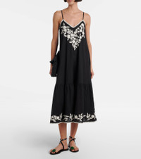 Embroidered cotton and linen midi dress