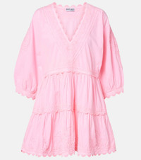Embroidered tiered cotton poplin minidress