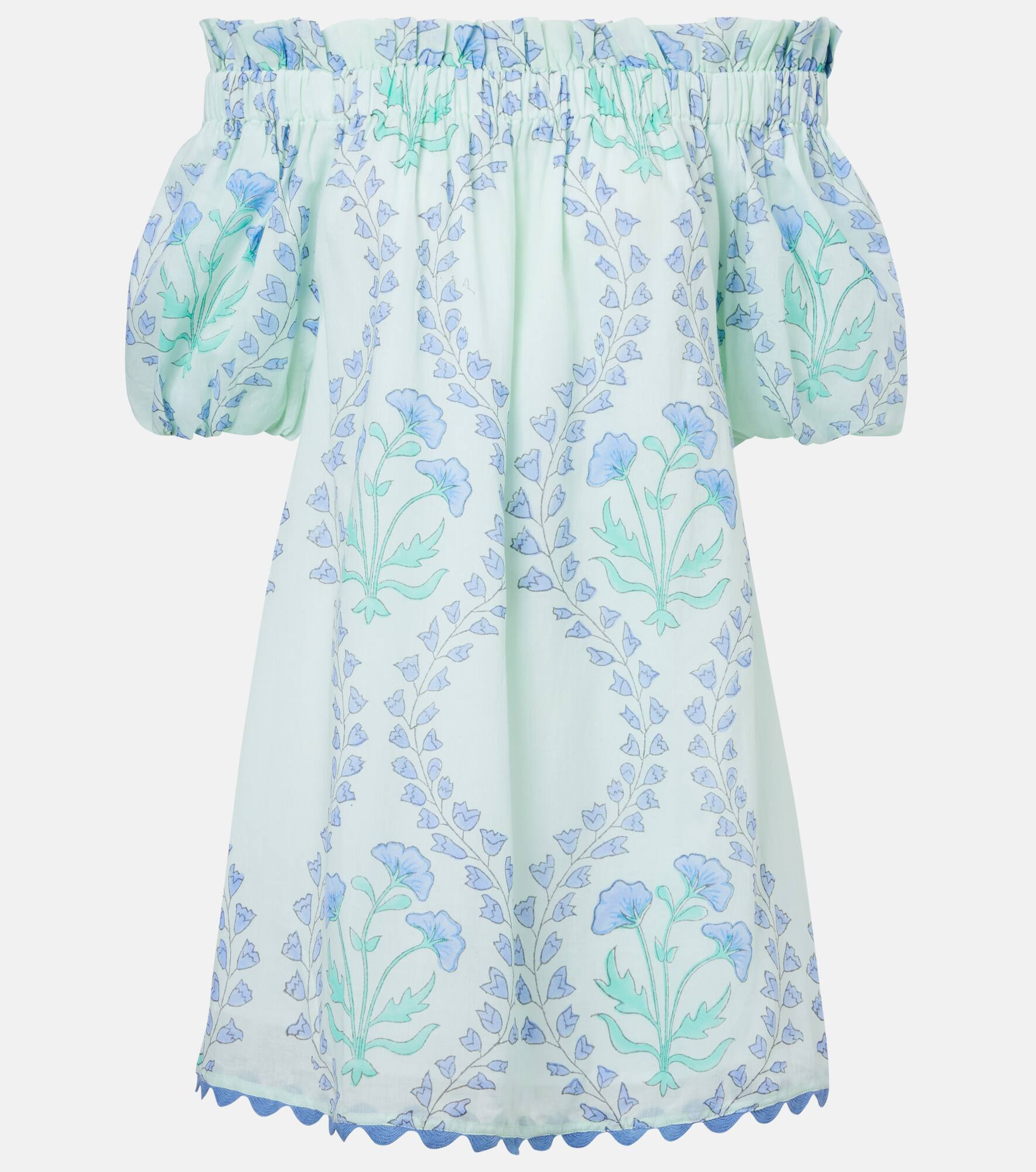 Handmade by skilled artisans using traditional dyeing and printing techniques, Juliet Dunn’s designs are a love letter to Indian craftsmanship. This minidress has an off-shoulder silhouette, is crafted from cotton, and is complete with a charming print. Product Details - Material: 100% cotton - Care instructions: hand wash - Made in India - Designer color name: Aqua Blue - Item color: multicolor - Item number: P01053473 Size & Fit - True to size - Off-the-shoulder - Designed for a loose fit - Non-stretchy fabric - The model seen in the picture is 178cm-5'10" and wearing a size 0
