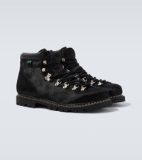 With experimentation at its core, Junya Watanabe creates avant-garde styles by manipulating fabrics and subverting classic codes. Made in France from calf hair with leather lining, the Paraboot boots are a classic lace-up style with silver-toned hardware. Product Details - Upper: calf hair - Lining: leather - Sole: leather insole, rubber sole - Toe shape: almond toe - Made in France - Includes: dust bag, shoe box - Designer color name: Black - Item color: black - Closure: lace-up - Trim: leather - Hardware color: silver - Item number: P01098228 Size & Fit - Fits slightly small to size - we recommend trying a half size larger - US sizes