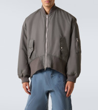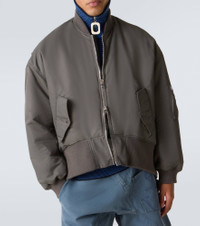 From casualwear to tailoring, JW Anderson marries modernity with style in every design. Made with a nylon fabric, this bomber jacket has a two-way zipped front and is finished with both snap-buttoned, and sleeve pockets. Product Details - Material: 100% nylon - Care instructions: dry clean - Made in China - Designer color name: Steel - Item color: gray - Lining: 57% viscose, 43% polyester - Filling: 100% polyester - Interlining: 61% acrylic, 24% wool, 14% polyester, 1% elastane - Contains non-textile parts of animal origin - Closure: two-way zipped front - Pockets: snap-buttoned pockets, sleeve pocket - Elasticated waistband - Cuff: elasticated - Item number: P01049259 Size & Fit - True to size - Dropped shoulders - Elasticated hem - Oversized - Non-stretchy fabric - Falls to the hip - Height of model is 188cm-74" and wears a size L