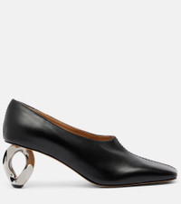 First introduced on the FW20 runway, exaggerated curb chains have become a JW Anderson signature. Crafted in Italy from leather, these pumps are shaped with square toes and sit atop 95mm heels. Product Details - Upper: calf leather - Lining: leather - Sole: leather insole and sole - Toe shape: square toe - Made in Italy - Includes: dust bag, shoe box - Designer color name: Black - Item color: black - Hardware color: silver - Item number: P01086803 Size & Fit - Fits slightly large to size - we recommend trying a half size smaller - European sizes - 9,5cm-3.5" heel (size EU 38)