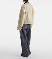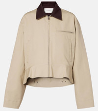 This jacket from JW Anderson is the perfect layer to see you through transitional weather. The style is made from a cotton fabric with a curved hemline, a zipped front, and a contrasting collar. Product Details - Material: 100% cotton - Care instructions: dry clean - Made in Bulgaria - Designer color name: Nougat/Chocolate - Item color: beige, brown - Lining: 100% cotton - Closure: concealed zipper - Pockets: side slit pockets, zipped pocket - Buttoned cuffs - Item number: P01058726 Size & Fit - Fits large to size - we recommend trying one size smaller - Dropped shoulders - Designed for a loose fit - Non-stretchy fabric - Falls to the hip - The model seen in the picture is 178cm-5'10" and wearing a size XXS