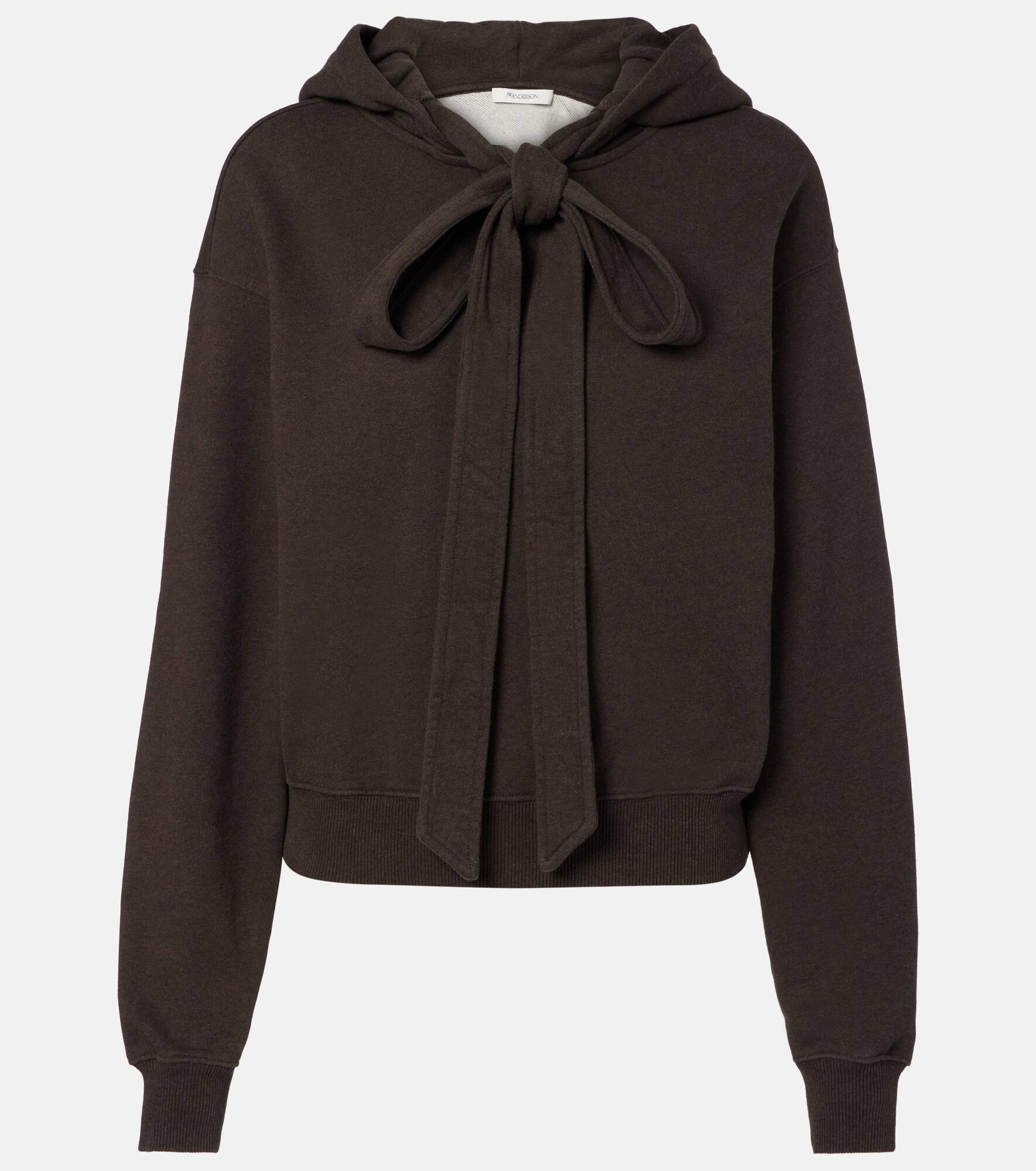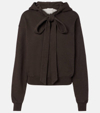 This JW Anderson hoodie blends a timeless, casual design with a twist, delivering a charming essential. Crafted from cotton jersey, the style is accented with a tie-neck that creates a bow at the front. Product Details - Material: 100% cotton - Care instructions: machine wash at 30 degrees - Made in Portugal - Designer color name: Dark Brown Melange - Item color: brown - Material II: 96% cotton, 4% elastane - Cuff: ribbed - Hem: ribbed - Self-tie collar - Hood - Item number: P01058736 Size & Fit - True to size - Dropped shoulders - Straight fit - Slightly stretchy fabric - Slightly cropped - The model seen in the picture is 178cm-5'10" and wearing a size XS