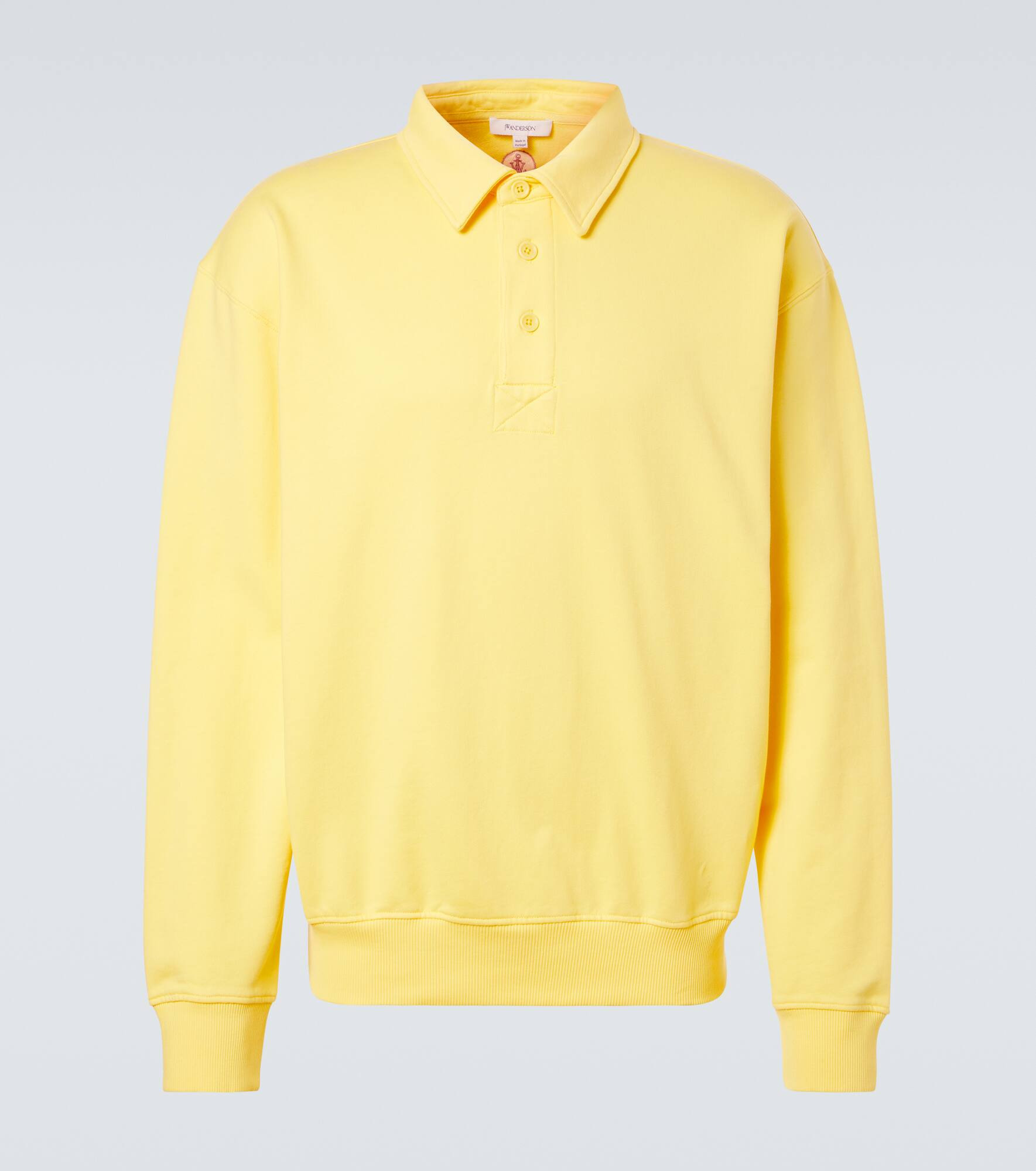 From casualwear to tailoring, JW Anderson marries modernity with style in every design. This long-sleeved polo shirt is crafted from cotton jersey and is cut to a relaxed silhouette. Product Details - Material: 100% cotton - Care instructions: machine wash at 30 degrees - Made in Portugal - Designer color name: Lemon - Item color: yellow - Material II: 98% cotton, 2% elastane - Collar: polo collar - Closure: buttoned placket - Cuff: ribbed - Hem: ribbed - Item number: P01049272 Size & Fit - True to size - Dropped shoulders - Designed for a loose fit - Elasticated hem - Slightly stretchy fabric - Falls to the hip - Height of model is 189cm-74.5" and wears a size L