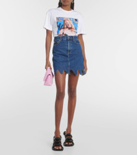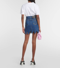 From casualwear to tailoring, JW Anderson marries modernity with style in every design. The brand's approach is evidenced by this denim miniskirt, which has a laser-cut distressed hem for a unique vintage flair. Product Details - Material: 100% cotton - Care instructions: machine wash at 30 degrees - Made in Italy - Designer color name: Indigo - Closure: zipper fly, button fastening - Pockets: five pockets - Item number: P00855965 Size & Fit - True to size - Best fit for a slightly wider waist - Fitted - Mid-weight material - Non-stretchy fabric - The model seen in the picture is 178cm-5'10" and wearing a size UK 8