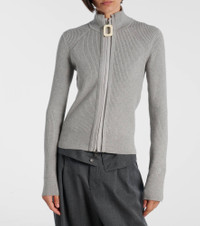 JW Anderson updates the classic cardigan with modern, sharp details with this style. Knitted from a soft cotton-blend, the design features a zipped front and the brand's signature Anchor emblem on the left sleeve. Product Details - Material: 83% cotton, 12% polyamide, 4% cashmere, 1% elastane - Care instructions: dry clean - Made in China - Designer color name: Light GreyMelange - Item color: gray - Contains non-textile parts of animal origin - Closure: two-way zipped front - Collar: mockneck - Cuff: ribbed - Hem: ribbed - Item number: P01058739 Size & Fit - True to size - Fitted - Stretchy fabric - Falls to the hip - The model seen in the picture is 178cm-5'10" and wearing a size XS