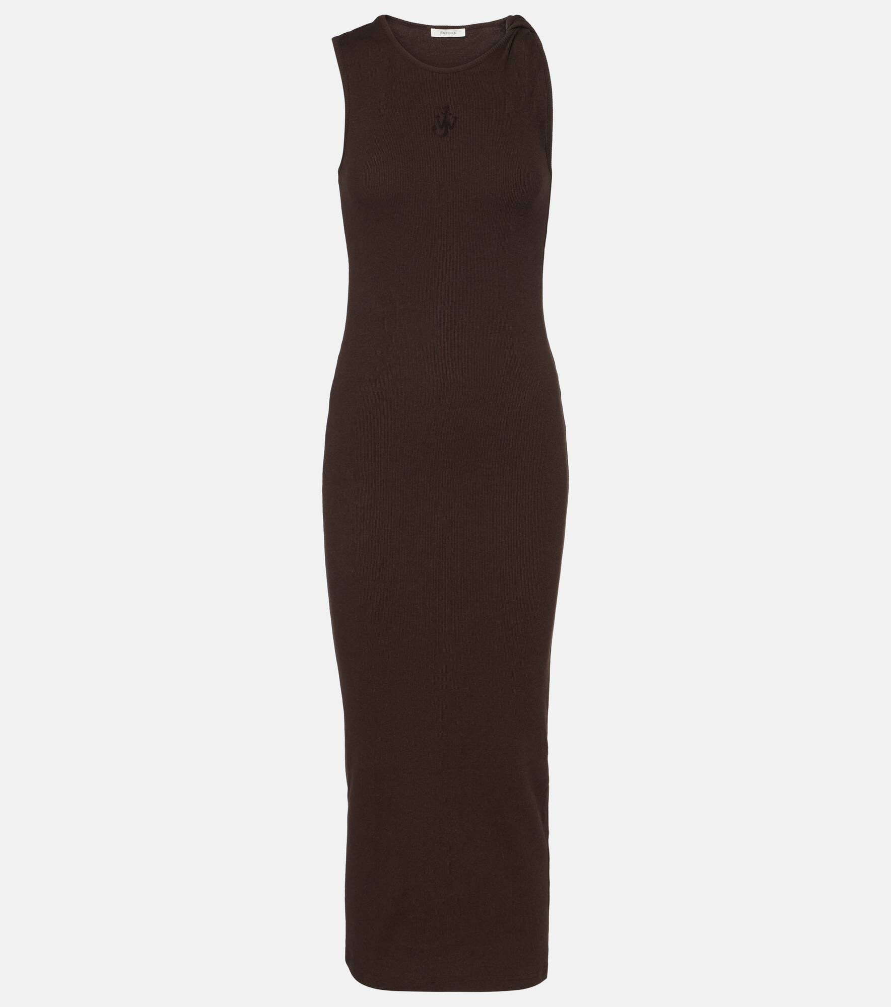 This JW Anderson cotton maxi dress is cut to a sheath silhouette and features a twisted shoulder strap. The front is finished with the signature Anchor emblem, presenting the designer's initials in a humorous and humble way. Product Details - Material: 98% cotton, 2% elastane - Care instructions: machine wash at 30 degrees - Made in Portugal - Designer color name: Dark Brown Melange - Item color: brown - Material II: 98% cotton, 2% elastane - Item number: P01058724 Size & Fit - True to size - Fitted - Stretchy fabric - The model seen in the picture is 178cm-5'10" and wearing a size XS