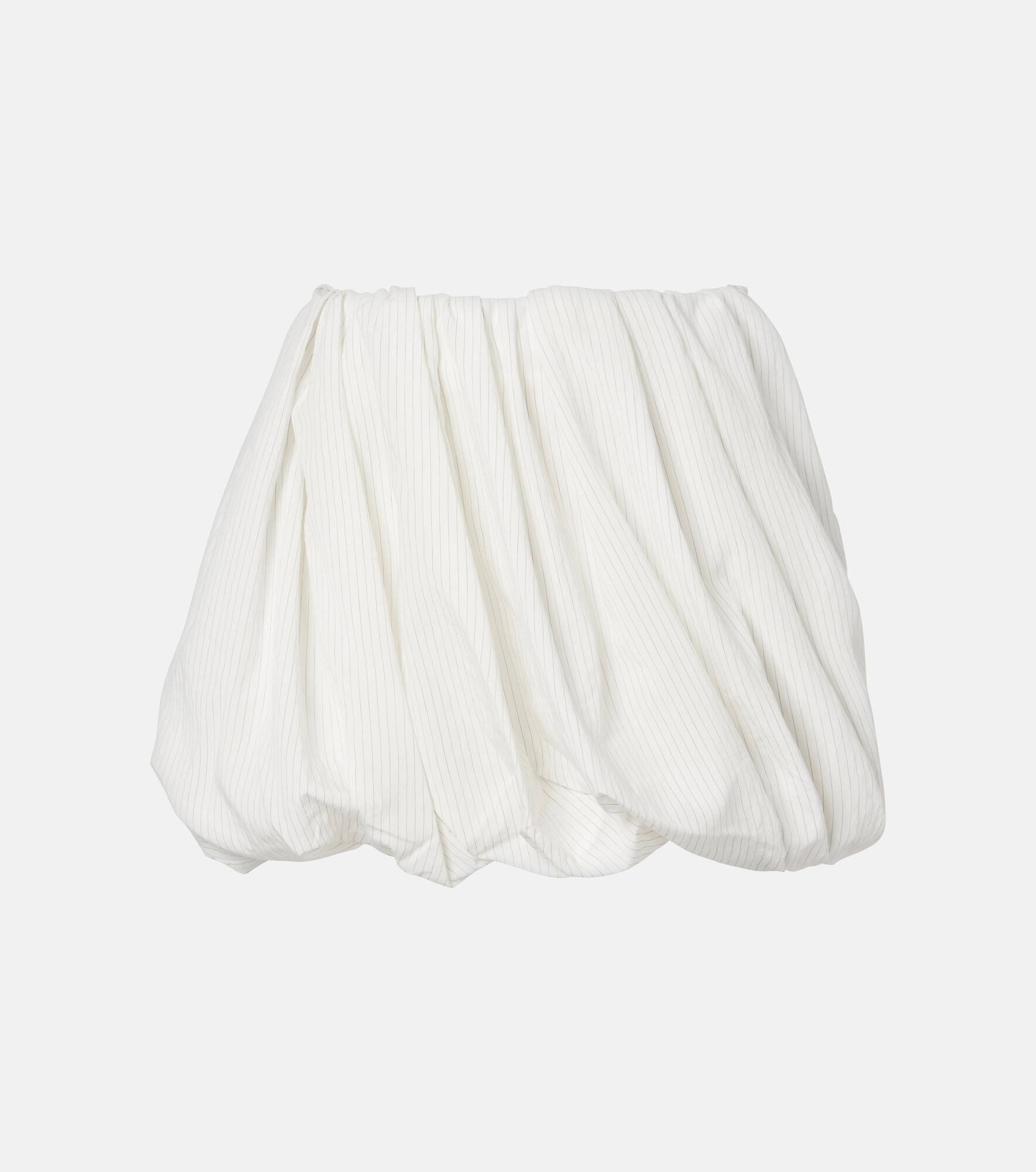 From laid-back essentials to sharp tailoring, JW Anderson redefines fashion with a fresh, modern approach. Designed with practical side pockets, this gathered miniskirt is shaped with a balloon silhouette and showcases a pinstripe motif. Product Details - Material: 83% viscose, 15% polyamide, 2% cotton - Care instructions: dry clean - Made in Bulgaria - Designer color name: Off White/Grey - Item color: white - Lining: 100% viscose - Closure: invisible zipper - Item number: P01058755 Size & Fit - True to size - Non-stretchy fabric - The model seen in the picture is 178cm-5'10" and wearing a size UK 8