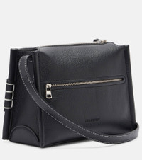 Crafted in Italy from soft leather, the JW Anderson Loafer bag is reminiscent of a classic penny shoe silhouette with its hand-stitched keeper. This Small iteration has a crossbody strap and a top handle. Product Details - Material: deer leather - Lining: leather - Made in Italy - Color: black - Designer color name: Black - Item color: black - Adjustable shoulder strap - Internal details: card slot, single compartment - Closure: zipped top - Includes: dust bag - Item number: P01137515 Size & Fit - Height 17cm-6.5" - Width 25cm-10" - Depth 8cm-3" - Adjustable shoulder strap - Min. length shoulder strap 113cm-44.5" - Max. length shoulder strap 70cm-27.5"