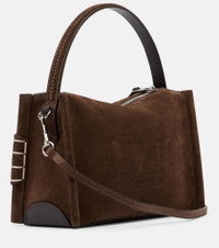 From casualwear to tailoring, JW Anderson marries modernity with style in every design. Italian-crafted from suede, the precisely cut, edge-painted Loafer Small top-handle bag is a compact signature silhouette with a shoe-inspired penny keeper. Product Details - Material: leather (suede) - Lining: leather - Made in Italy - Color: brown - Designer color name: Brown - Closure: zipped top - Top handle, Detachable shoulder strap - Item number: P01137514 Size & Fit - Height 15cm-6" - Max. width 24,5cm-9.5" - Depth 7,5cm-3" - Length of handle 36cm-14" - Adjustable shoulder strap - Min. length shoulder strap 104cm-41" - Max. length shoulder strap 114cm-45"