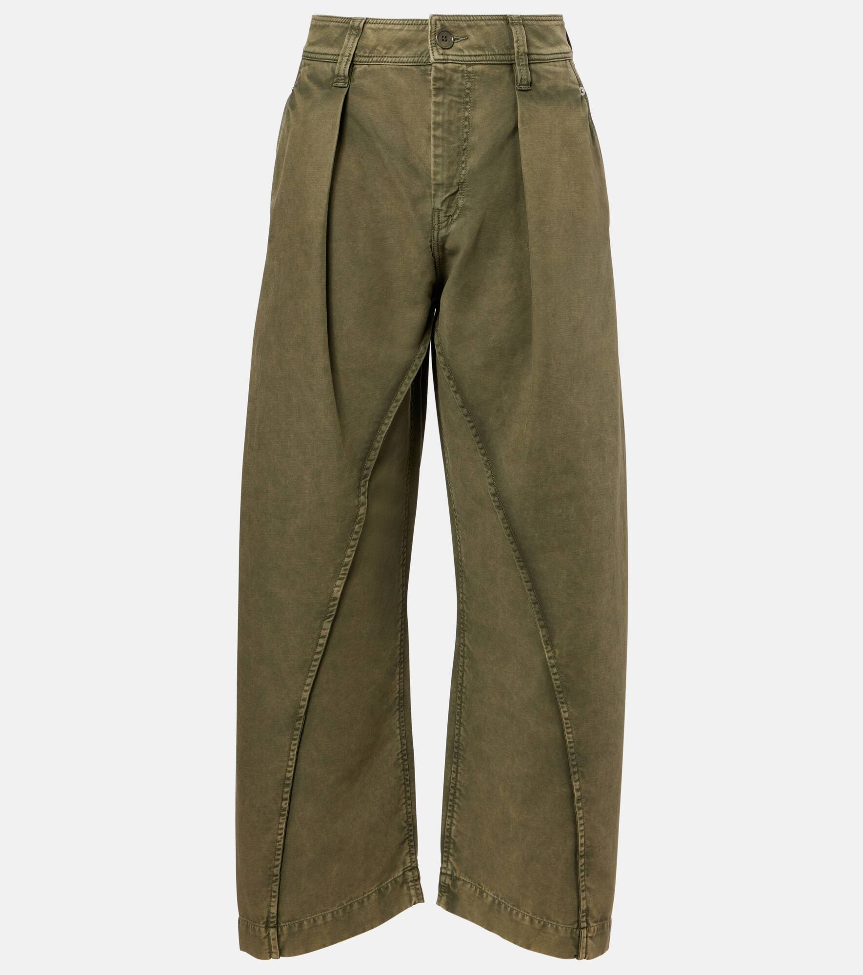 From casualwear to tailoring, JW Anderson marries modernity with style in every design. Crafted from pure cotton, these wide-leg jeans feature twisted seams, side-slit pockets, and back pockets. Product Details - Material: 100% cotton - Care instructions: machine wash at 30 degrees - Made in Portugal - Designer color name: Olive - Item color: green - Lining: 100% cotton - Closure: zipper fly, button fastening - Pockets: side slit pockets, back pockets - Belt loops - Item number: P01058761 Size & Fit - True to size - Non-stretchy fabric - Wide-leg - Mid-rise - The model seen in the picture is 178cm-5'10" and wearing a size 26