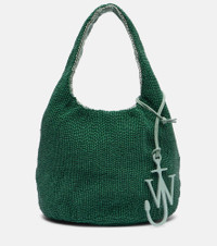 This tote bag from JW Anderson is lined with cotton and showcases a beaded style. The piece is finished with a detachable charm featuring the brand's logo. Product Details - Material: fabric - Lining: cotton - Made in India - Designer color name: Green - Item color: green - Top handles - Closure: magnetic fastening - Detachable charm - Item number: P01053445 Size & Fit - Height 18cm-7" - Width 35cm-14" - Depth 22cm-8.5" - Length of handles 40cm-15.5"