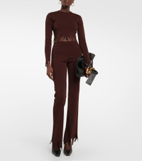 From casualwear to tailoring, JW Anderson marries modernity with style in every design. Rib-knitted in Italy, these brown pants sit high at the waist and have a fit-and-flare silhouette with laser-cut distressed hems. Product Details - Material: 65% viscose, 35% polyamide - Care instructions: dry clean - Made in Italy - Designer color name: Chocolate Brown - Item number: P00855984 Size & Fit - True to size - Heavy material - Stretchy fabric - Slim-leg with a flared hem - The model seen in the picture is 178cm-5'10" and wearing a size XS