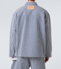 This versatile overshirt from JW Anderson is primed for effortless everyday layering. Made from cotton, the buttoned style features a classic striped pattern and is complete with a logo patch at the back. Product Details - Material: 100% cotton - Care instructions: machine wash at 30 degrees - Made in Bulgaria - Designer color name: Off White/Navy - Item color: white, blue - Contains non-textile parts of animal origin - Collar: classic (Straight point) - Pockets: buttoned pockets - Closure: buttoned front - Item number: P01049265 Size & Fit - Fits large to size - we recommend trying one size smaller - Dropped shoulders - Designed for a loose fit - Non-stretchy fabric - Falls below the hip - Height of model is 189cm-74.5" and wears a size M
