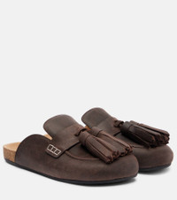 From casualwear to tailoring, JW Anderson marries modernity with style in every design. The Tassel mules are crafted from soft suede and finished with playful tassels on the uppers: an eye-catching detail that gives the pair its name. Product Details - Upper: calf leather - Lining: leather - Sole: leather insole, cork and rubber sole - Toe shape: round toe - Made in Italy - Includes: shoe box - Designer color name: Deep Walnut - Item color: brown - Item number: P01086807 Size & Fit - True to size - European sizes - 2cm-1" platform (size EU 38)
