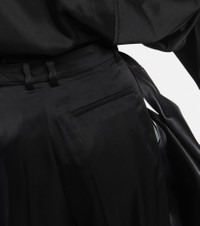 From casualwear to tailoring, JW Anderson marries modernity with style in every design. These black twill pants have an exaggerated wide-leg fit with inverted pleats, a concealed fly, and a cotton lining. Product Details - Material: 100% polyester - Care instructions: dry clean - Made in Bulgaria - Designer color name: Black - Lining: 100% cotton - Closure: zipper fly, button and hook fastenings - Pockets: side slit pockets, back pocket - Item number: P00856006 Size & Fit - True to size - Mid-weight material - Wide-leg - High-waisted - Low inseam - The model seen in the picture is 178cm-5'10" and wearing a size UK 8