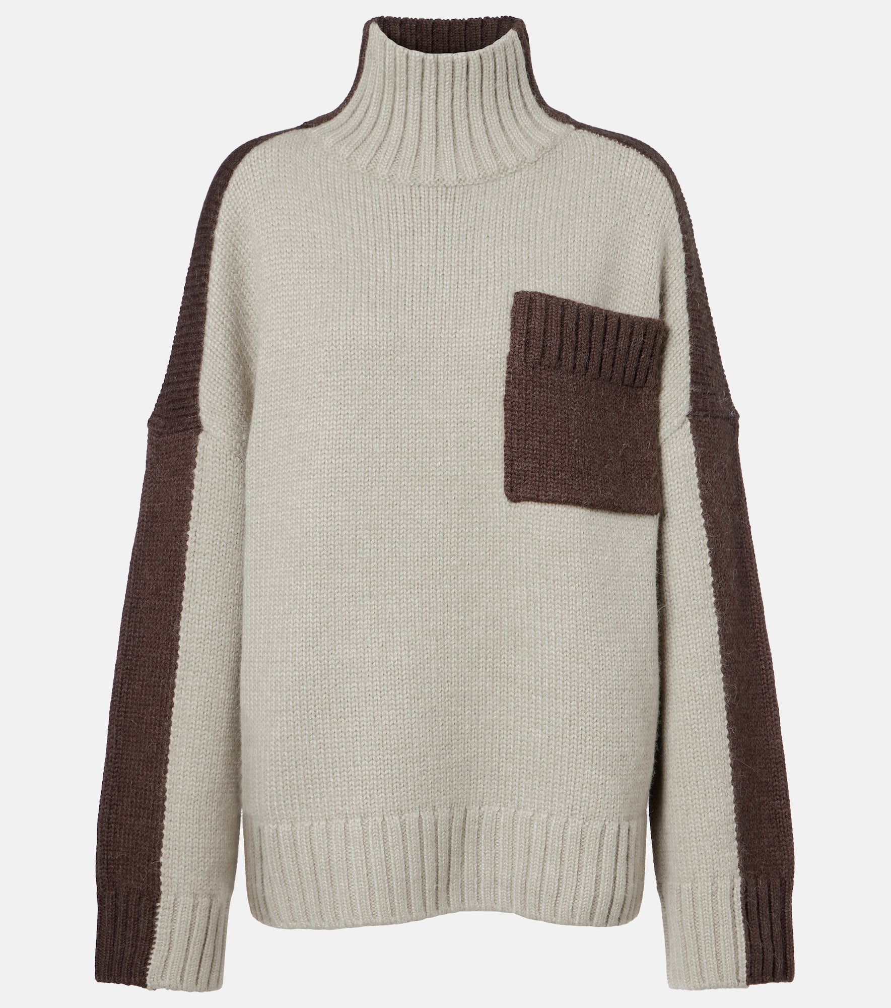 Crafted from a wool and alpaca blend, this turtleneck sweater from JW Anderson is cut to an oversized silhouette. The piece is finished with a breast pocket and a ribbed hem and cuffs. Product Details - Material: 45% wool, 38% alpaca wool, 17% acrylic - Care instructions: dry clean - Made in China - Designer color name: Nougat/Chocolate - Item color: brown - Material II: 45% wool, 38% alpaca wool, 17% acrylic - Collar: turtleneck - Pockets: breast pocket - Hem: ribbed - Cuff: ribbed - Item number: P01058740 Size & Fit - True to size - Dropped shoulders - Designed for a loose fit - Slightly stretchy fabric - Falls below the hip - The model seen in the picture is 178cm-5'10" and wearing a size XS