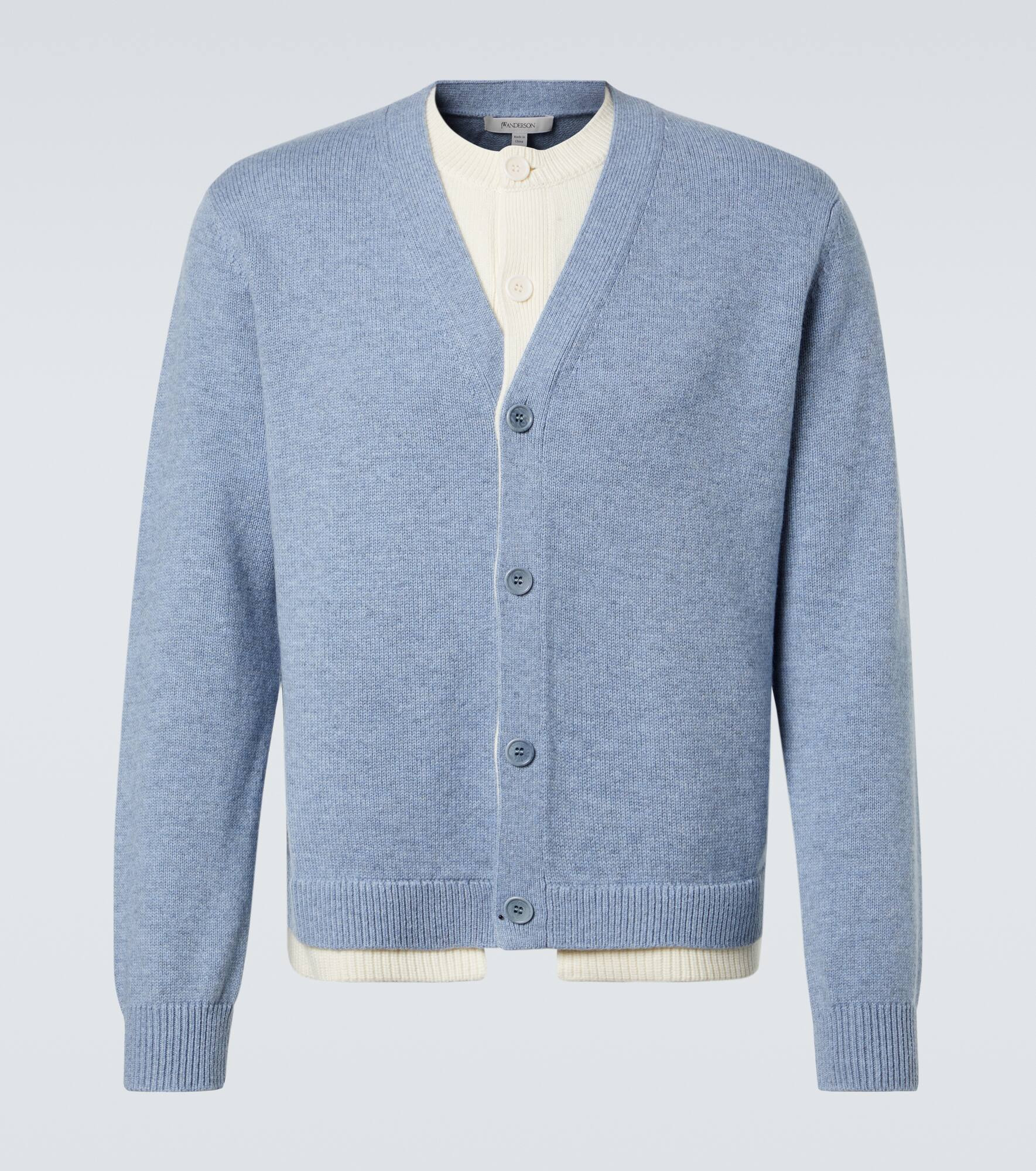From casualwear to tailoring, JW Anderson marries modernity with style in every design. Crafted from wool and cashmere, this cardigan features a ribbed hem and cuffs. Product Details - Material: 90% wool, 10% cashmere - Care instructions: dry clean - Made in China - Designer color name: Blue Melange - Item color: blue, beige - Closure: buttoned front - Material II: 90% wool, 10% cashmere - Contains non-textile parts of animal origin - Item number: P01049267 Size & Fit - True to size - Dropped shoulders - Straight fit - Stretchy fabric - Falls to the hip - Height of model is 189cm-74.5" and wears a size L