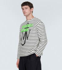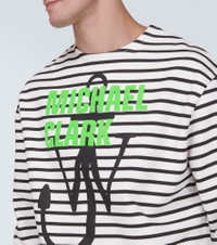 This JW Anderson collection is made in collaboration with the pioneering British dancer and choreographer Michael Clark. Drawing upon the slogans and iconography from the performer's posters and flyers, this unisex striped cotton sweatshirt is printed with green logo lettering on the front. Product Details - Material: 100% cotton - Care instructions: machine wash at 30 degrees - Made in Portugal - Designer color name: White/Black - Item number: P00838333 Size & Fit - True to size - Dropped shoulders - Oversized - Mid-weight material - Falls to the hip - The model in the picture is 185cm-6'1" and wearing a size M