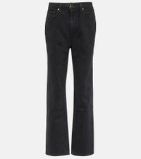 Product Details - Material: 100% cotton - Belt loops - Care instructions: hand wash - Made in the USA - Designer color name: Prescott - Closure: zipper fly, button fastening - Pockets: five pockets, slant pockets, back pockets - High-rise - Cropped - Item number: P00888047 Size & Fit - True to size - Non-stretchy fabric - Straight leg - High-rise - The model seen in the picture is 178cm-5'10" and wearing a size 26