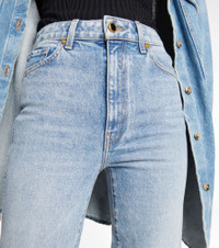 Heritage denim design directs this Khaite style. Made from cotton denim, the Abigail high-rise style has classic five-pocket styling and tobacco topstitching, contrasted with the off-kilter addition of cropped cuffs. Product Details - Material: 2% polyurethane, 98% cotton - Care instructions: hand wash - Made in the USA - Designer color name: Bryce Stretch - Closure: zipper fly, button fastening - Pockets: five pockets - Item number: P00755152 Size & Fit - Fits small to size - we recommend trying one size larger - Slightly stretchy fabric - Straight leg - High-rise - The model seen in the picture is 178cm-5'10" and wearing a size 27